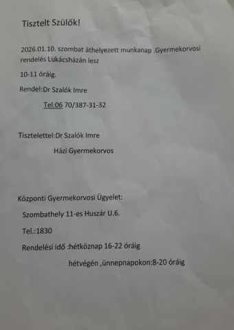 Gyermekorvosi rendelés változás
