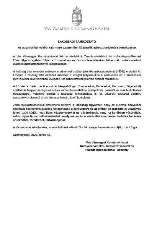 Lakossági tájékoztatás